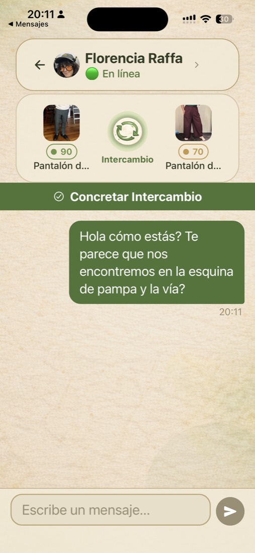 Cuando ambas personas quieren intercambiar, la app abre el paso siguiente sin friccion.
